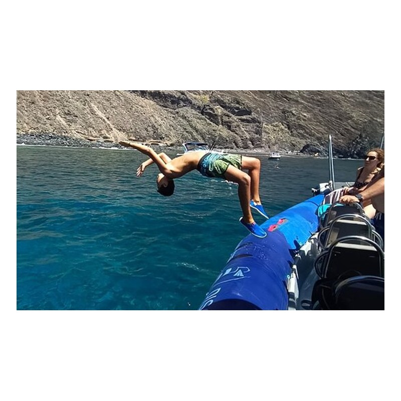 Während der Fahrt haben Sie die Möglichkeit, die majestätischen Klippen von Los Gigantes zu bewundern, während Sie die Strecke von Punta de Teno bis zum Strand von Masca zurücklegen. Unsere erfahrenen Guides sorgen dafür, dass die Reise ein unvergessliches Erlebnis wird, voll von beeindruckenden Landschaften und interessanten Informationen über die Region. Es ist auch ein Halt zum Schwimmen und Schnorcheln sowie Zeit zum Erfrischen mit kostenlosen Getränken wie Wasser, Bier oder alkoholfreien Getränken vorgesehen.