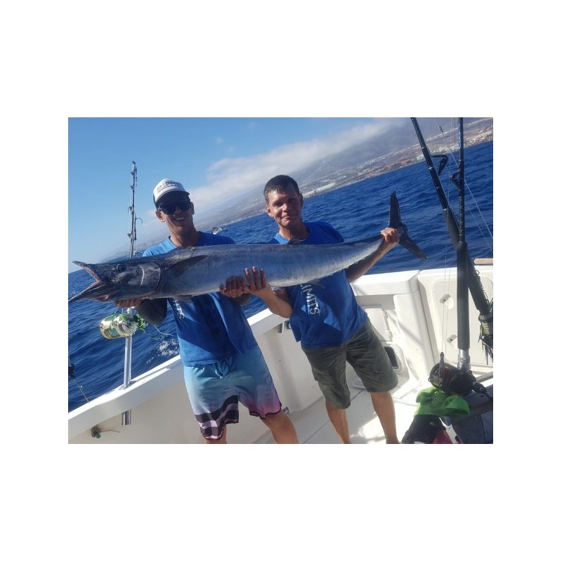 Disfrute de un maravilloso crucero por la costa de Tenerife en un hermoso Bertram de 10 metros, equipado con el equipo y las herramientas adecuadas para garantizar una experiencia de pesca inolvidable.